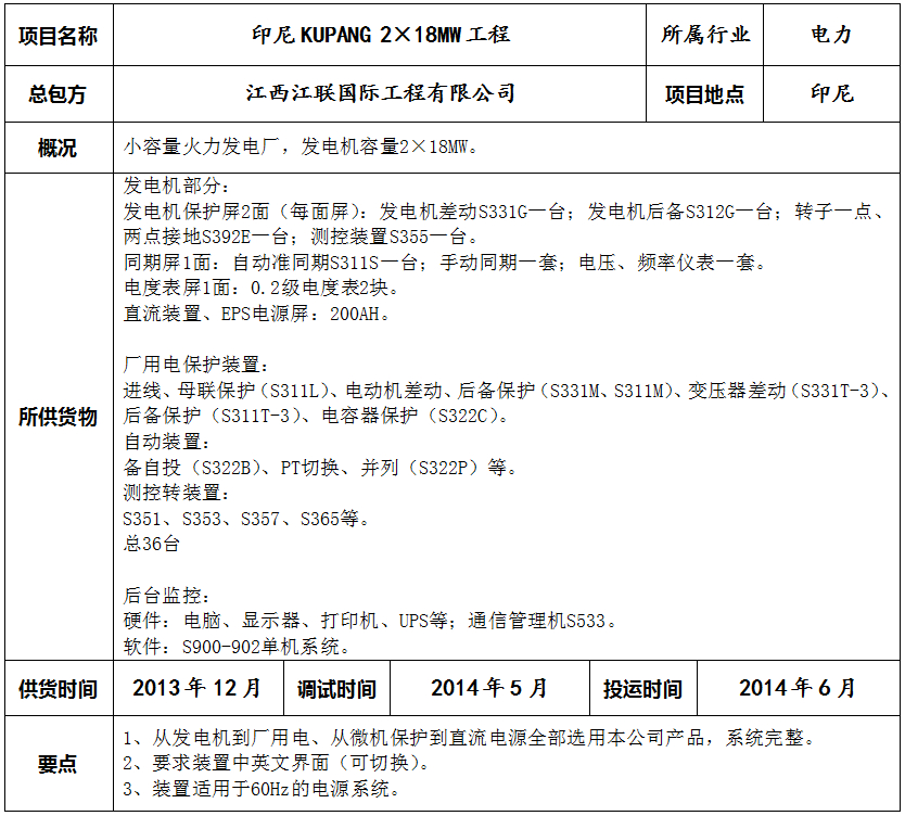 印尼KUPANG 2x18MW工程