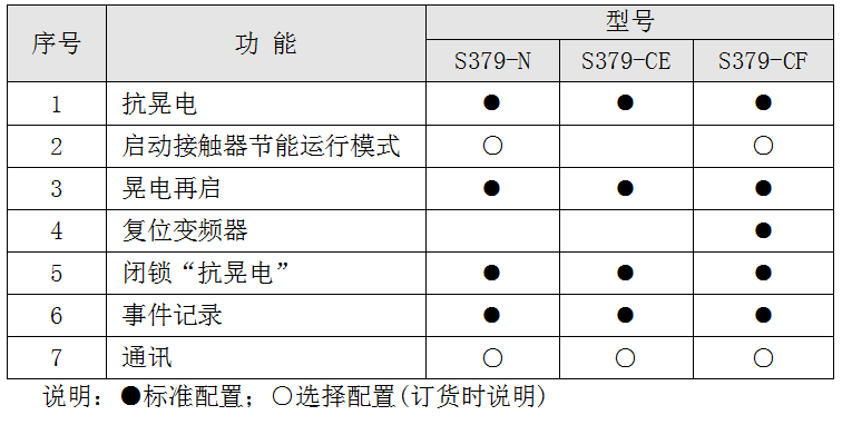 型号与功能表